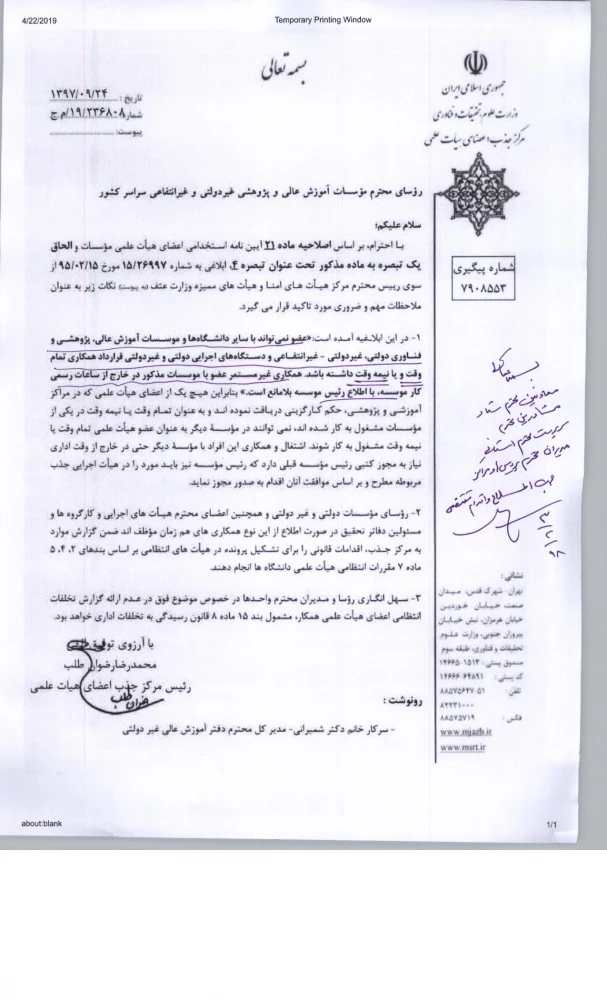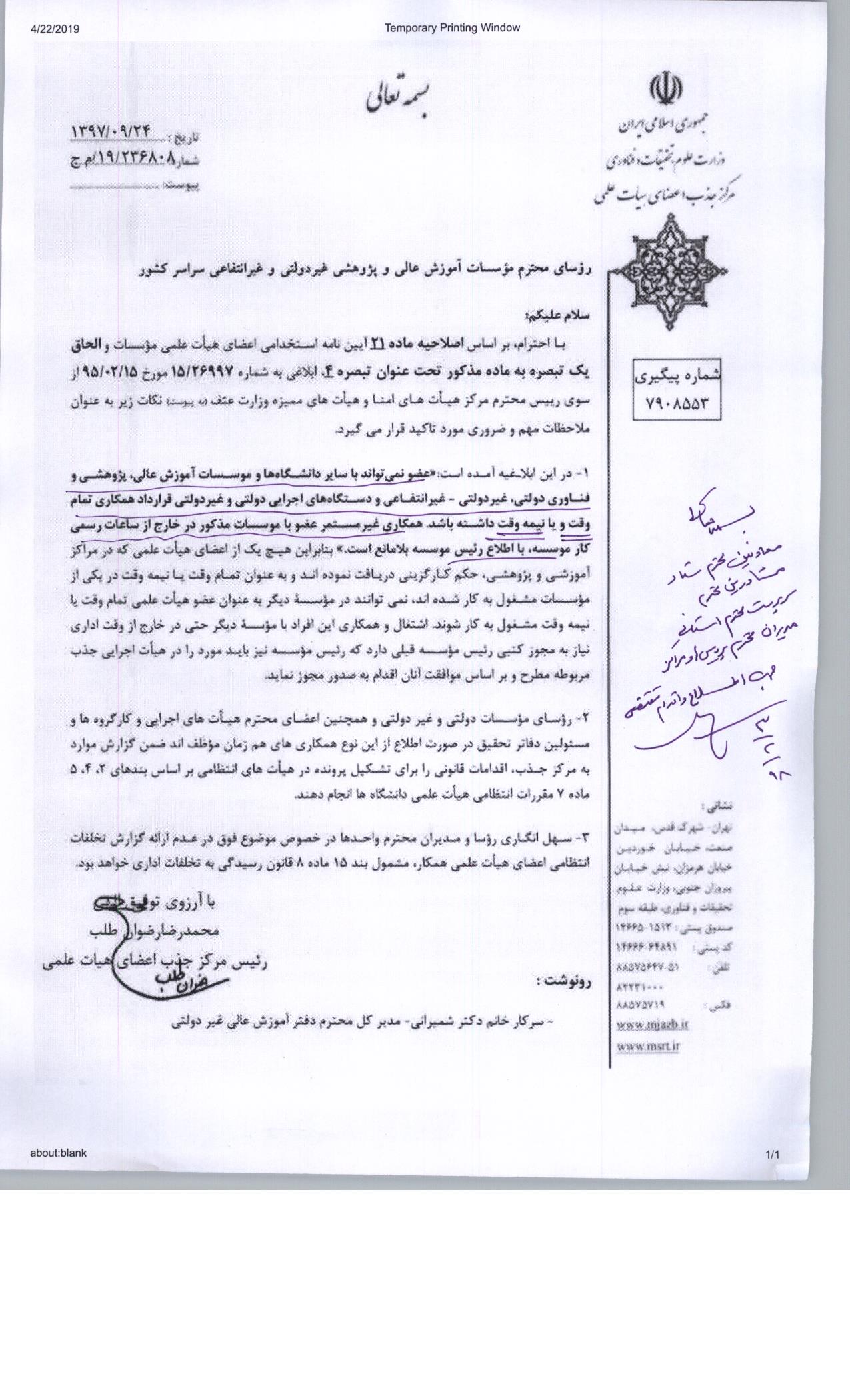 قابل توجه اساتید هیئت علمی: اصلاحیه ماده 21 آیین نامه استخدامی اعضای هیئت علمی