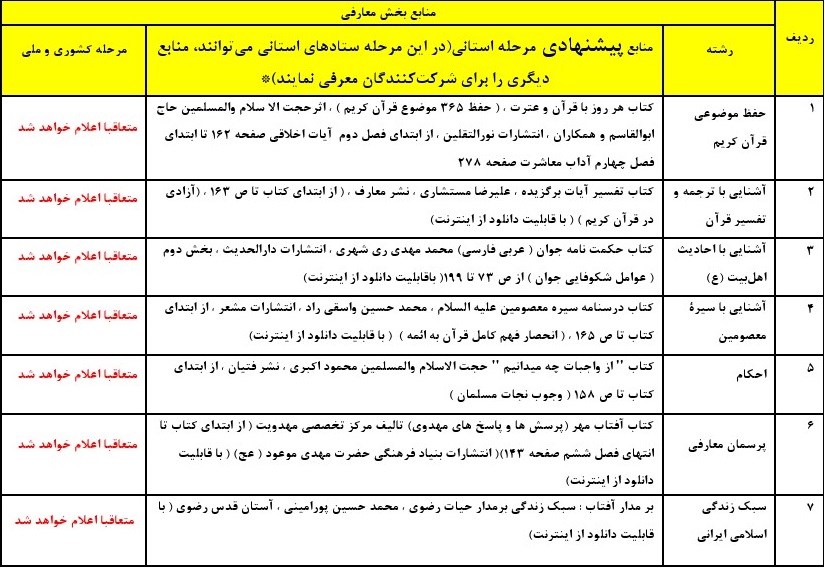 دریافت منابع رشتههای بخش معارفی (آزمونهای کتبی) : میتوانید منابع رشتههای معارفی را از بخش فایلهای ضمیمه در انتهای همین پیام دانلود نمایید.