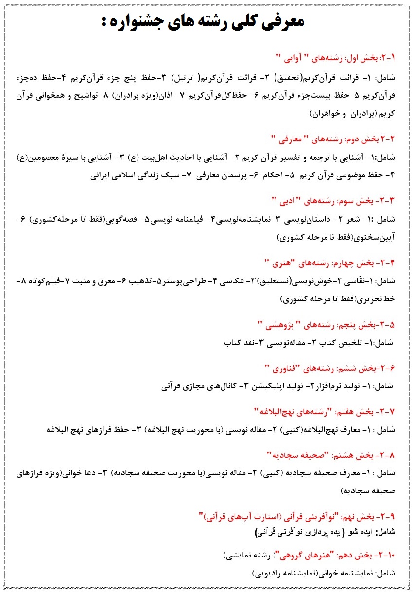 دستورالعمل سی و یکمین جشنواره قرآن و عترت