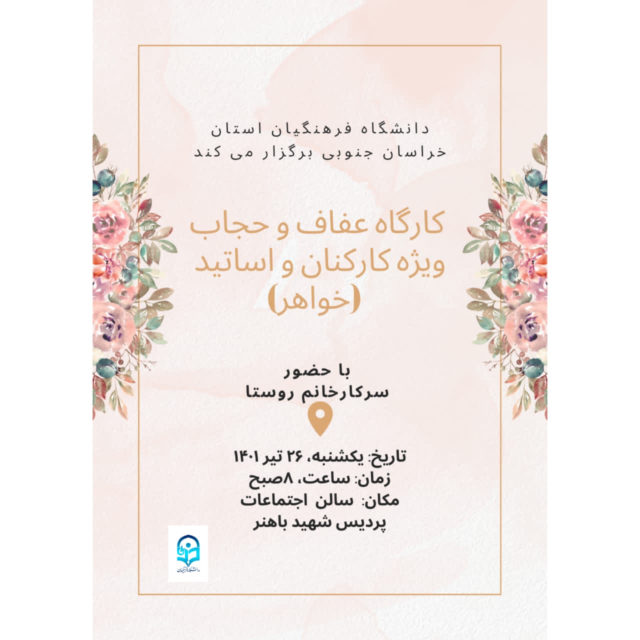 کارگاه عفاف و حجاب ویژه کارکنان و اساتید دانشگاه فرهنگیان خراسان جنوبی