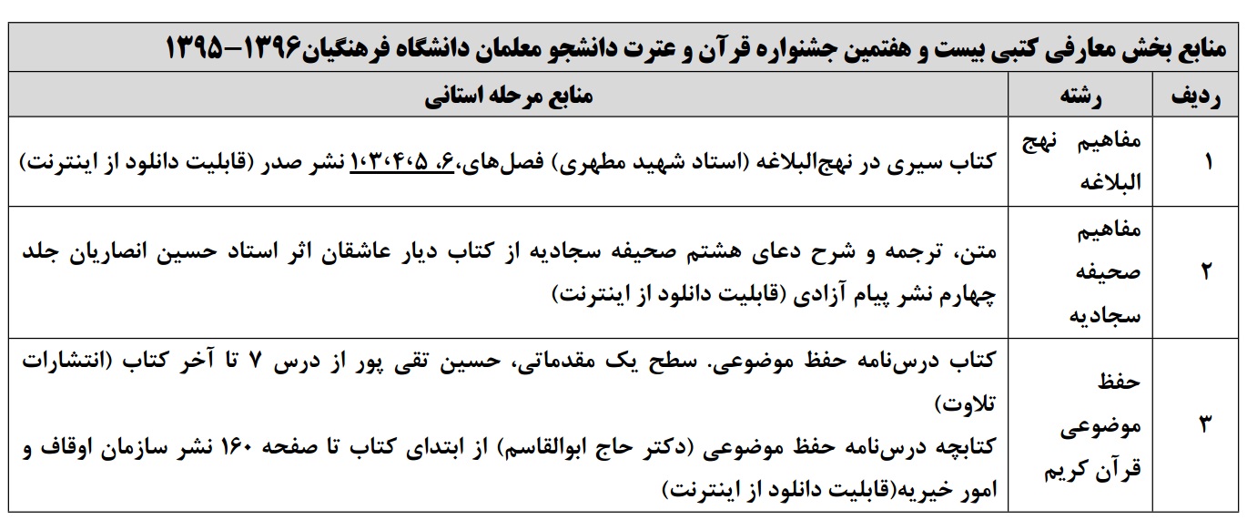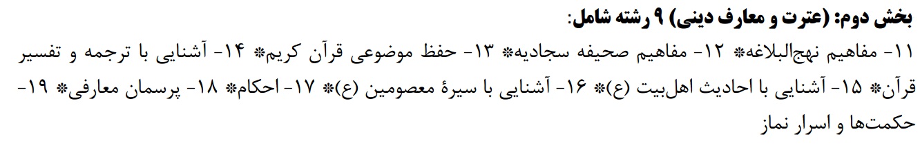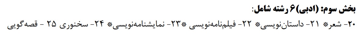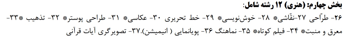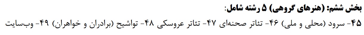 بیست و هفتمین جشنواره فرهنگی دانشگاه فرهنگیان در هفت بخش شامل رشته های ذیل برگزار خواهد شد