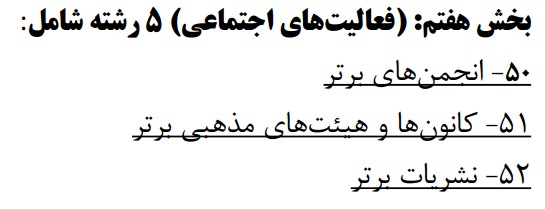 * برگزیدگان بخش فعالیت های اجتماعی (شامل: انجمن های برتر ، کانون های برتر ، نشریات برتر و هیئت های مذهبی برتر) توسط امور فرهنگی پردیس انتخاب می گردند .