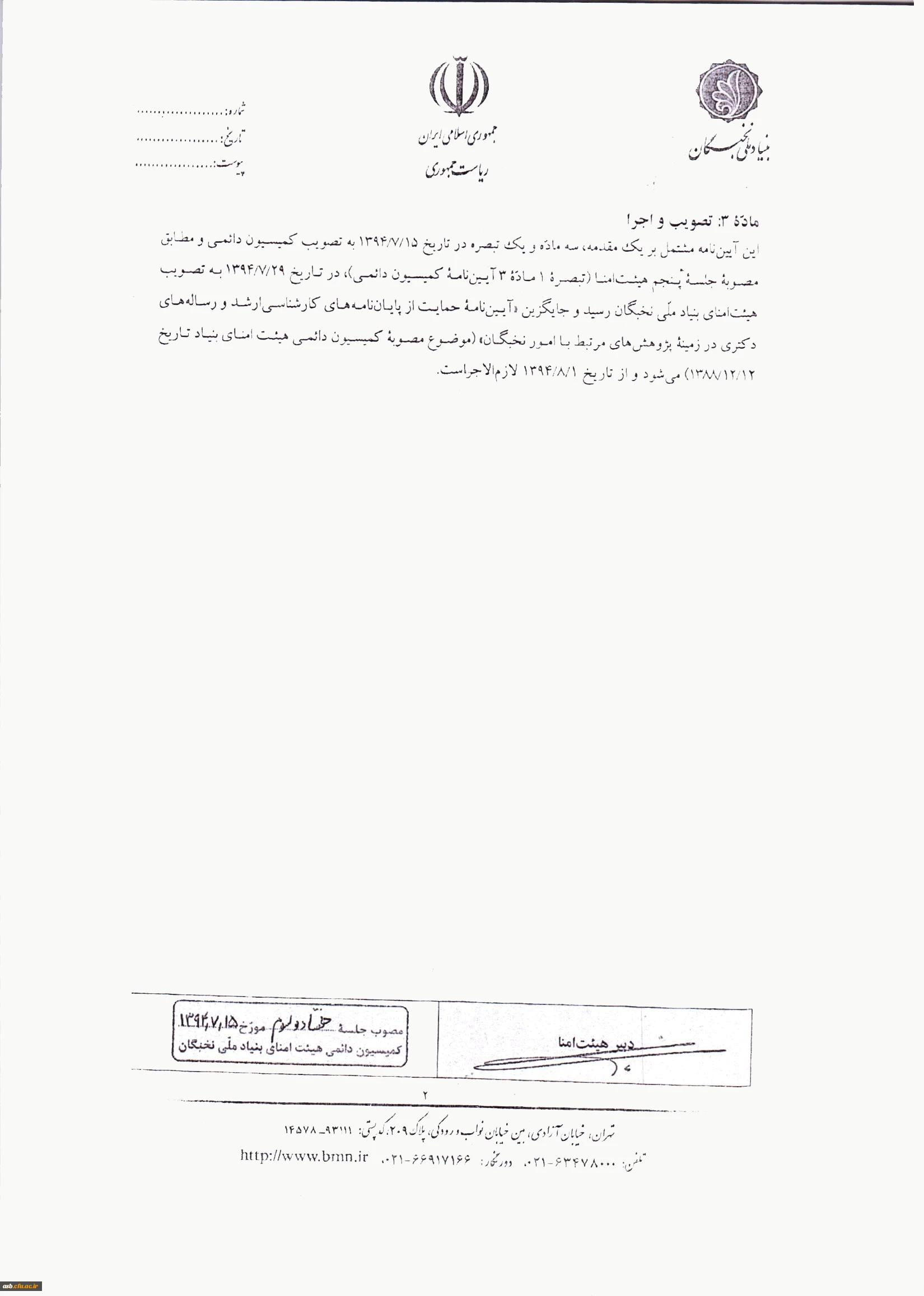 آیین نامه بنیاد ملی نخبگان در خصوص پشتیبانی از پایان نامه های دانشجویی در مقاطع تحصیلات تکمیلی 2