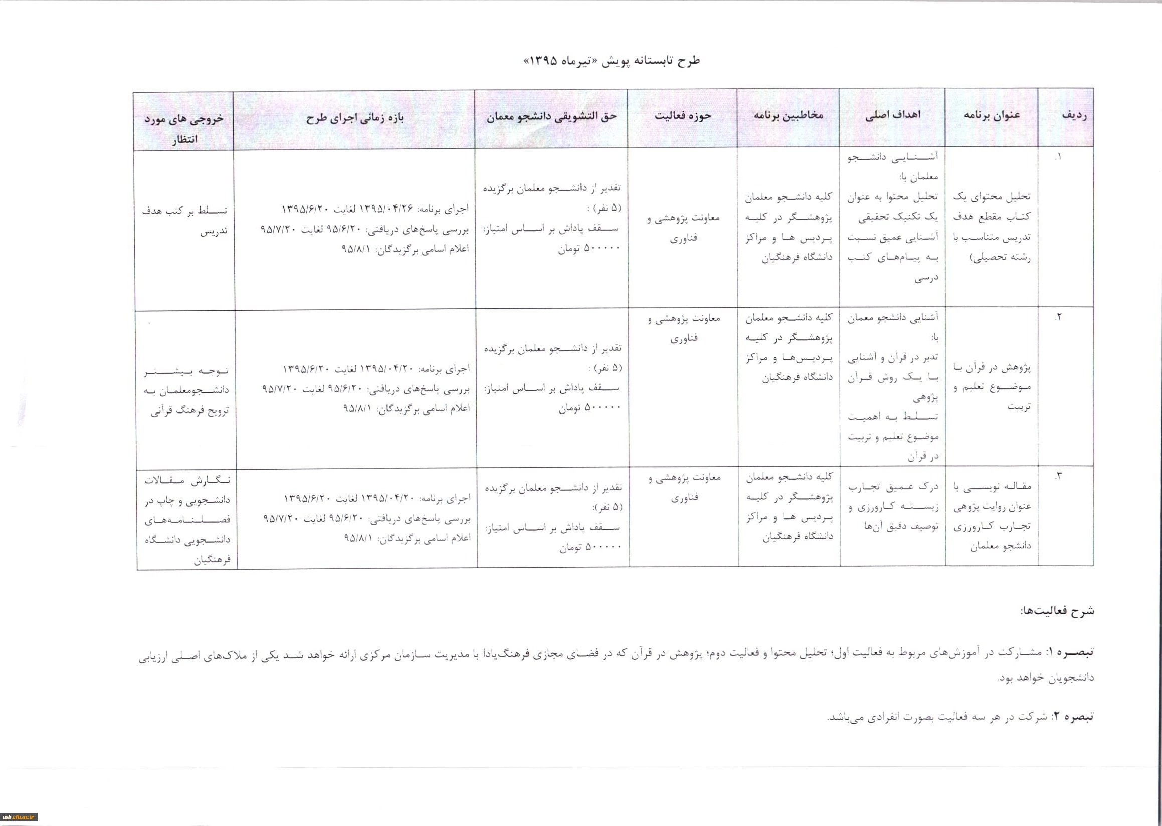 طرح تابستانه پویش " تیرماه 1395"