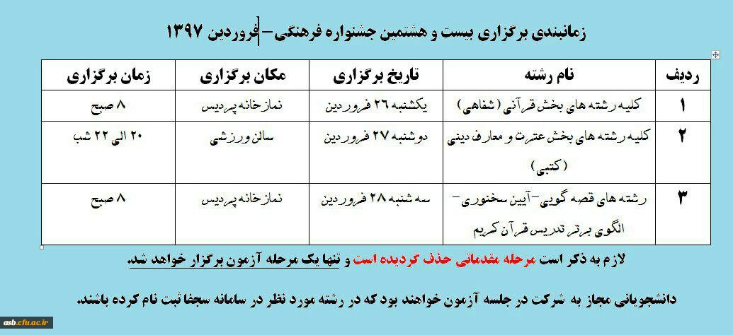 زمانبندی برگزاری بیست و هشتمین جشنواره فرهنگی 2