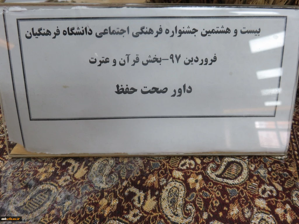امتیاز دهید : برگزاری مسابقات کتبی و شفاهی جشنواره فرهنگی دانشگاه فرهنگیان 5 شنبه 1 اردیبهشت 1397 ساعت 12:10