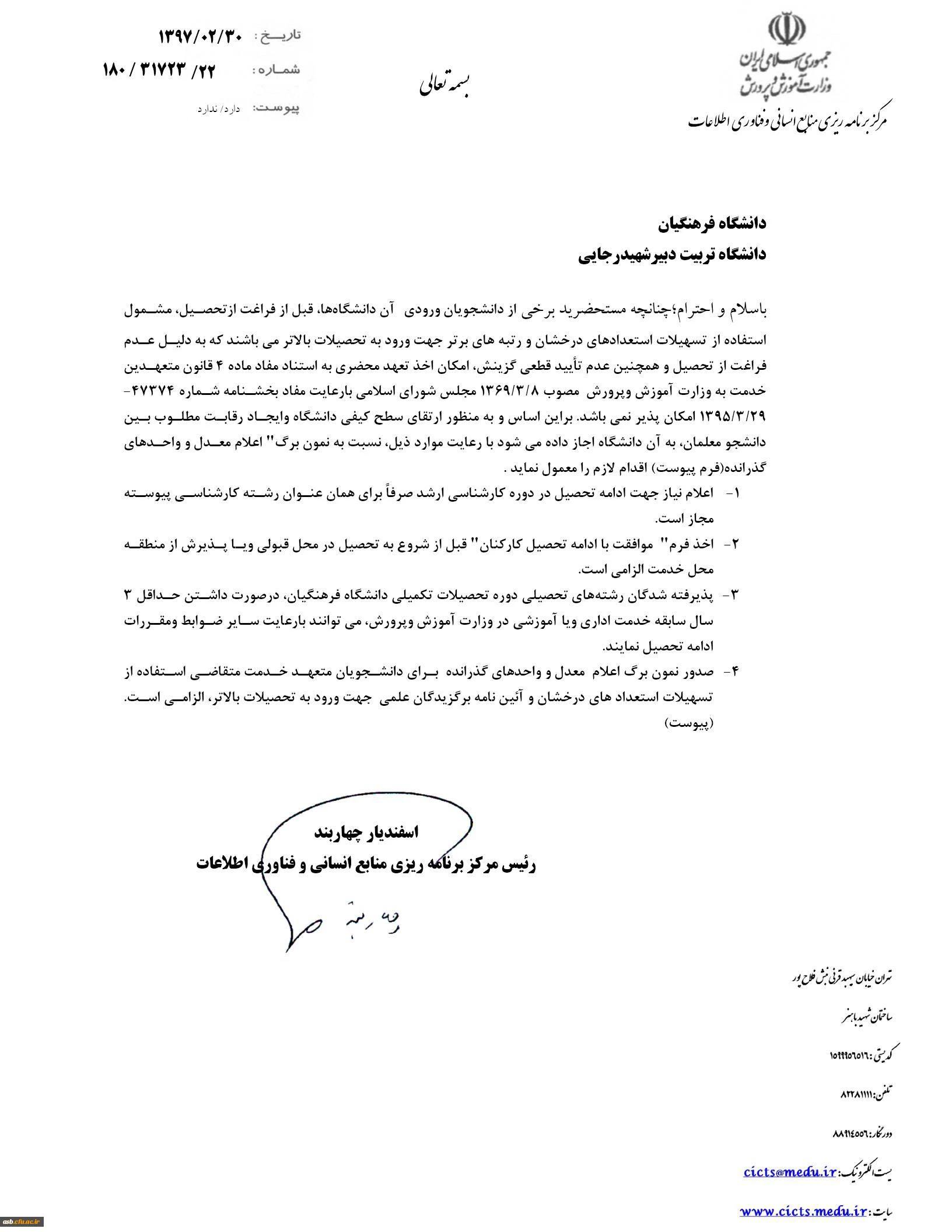 ارسال نمونه برگ اعلام معدل دانشجویان متعهد خدمت متقاضی استفاده از تسهیلات استعدادهای درخشان 3