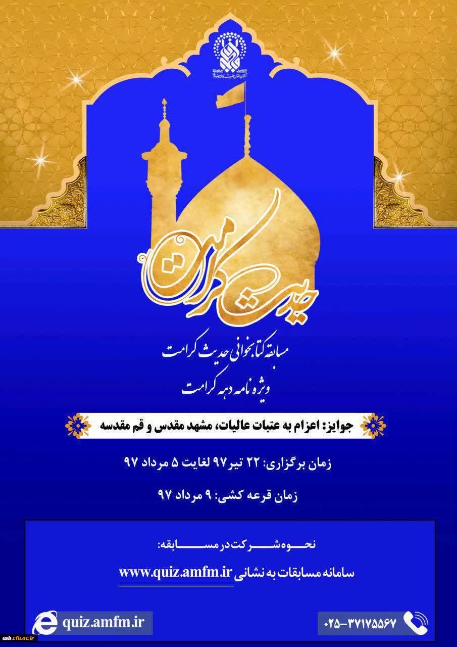 مسابقه کتابخوانی حدیث کرامت ویژه نامه دهه کرامت