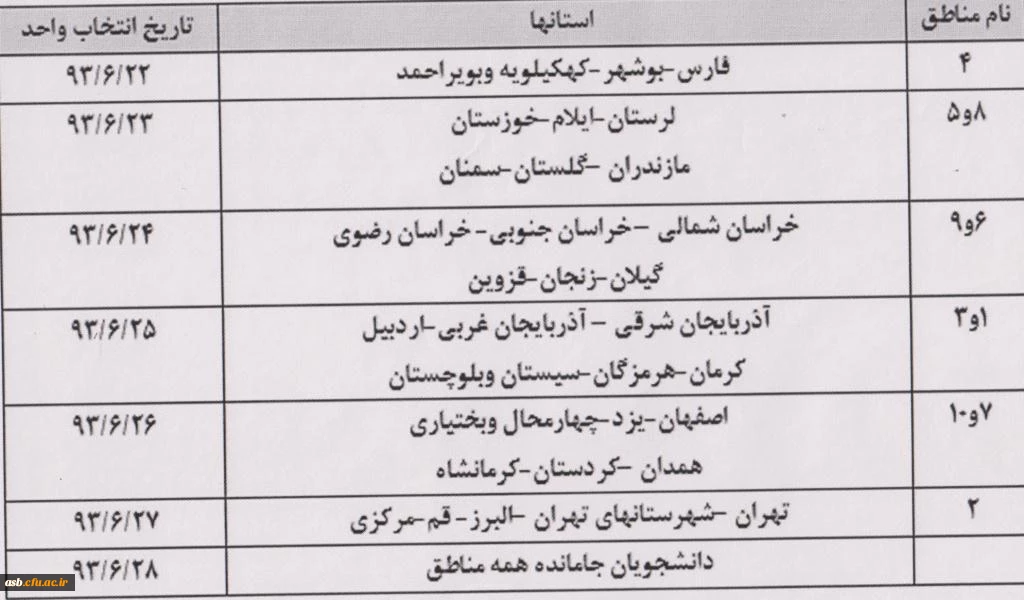 برنامه زمان بندی انتخاب واحد 3