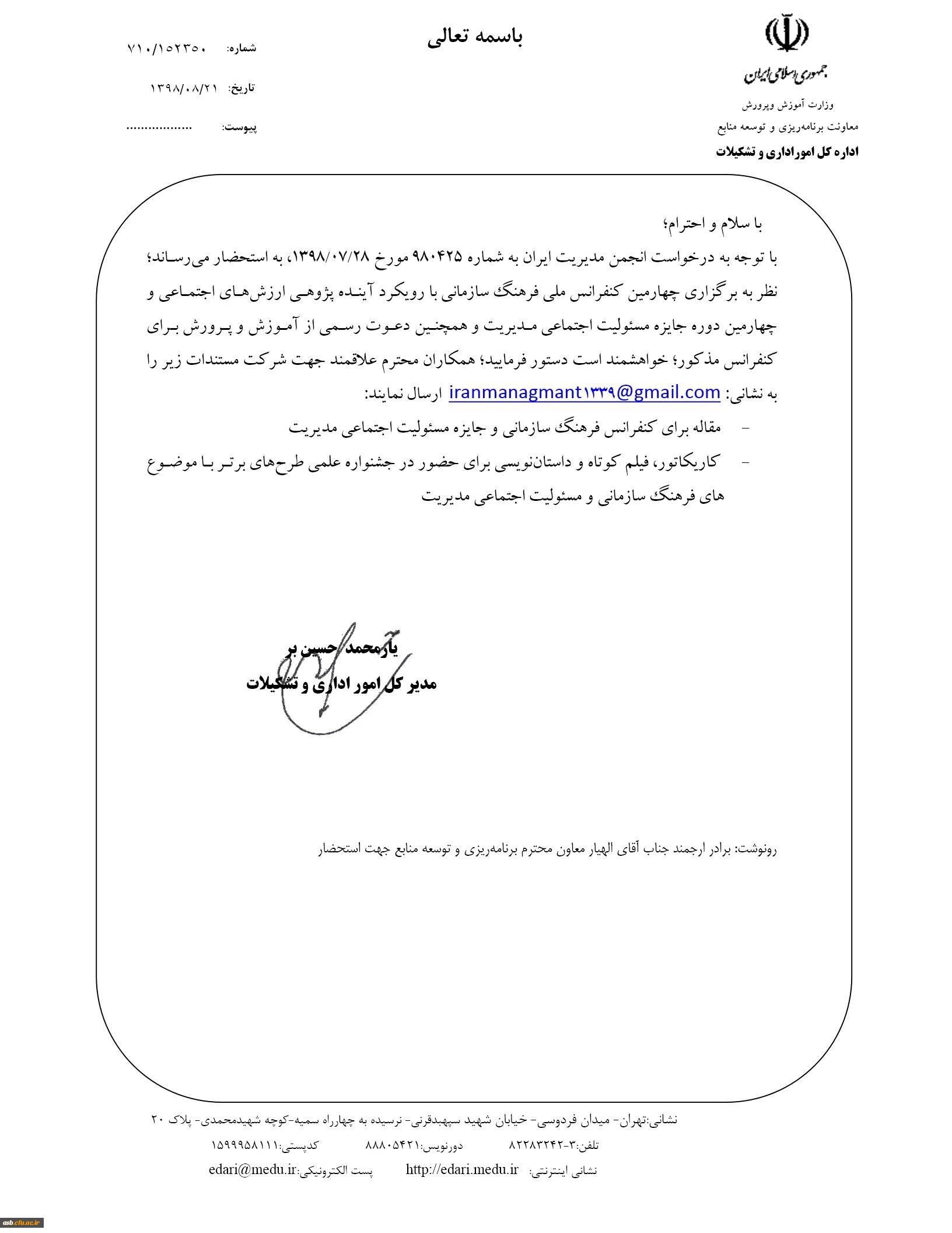 فراخوان ارسال مقاله و فیلم کوتاه با موضوع فرهنگ سازمانی 2