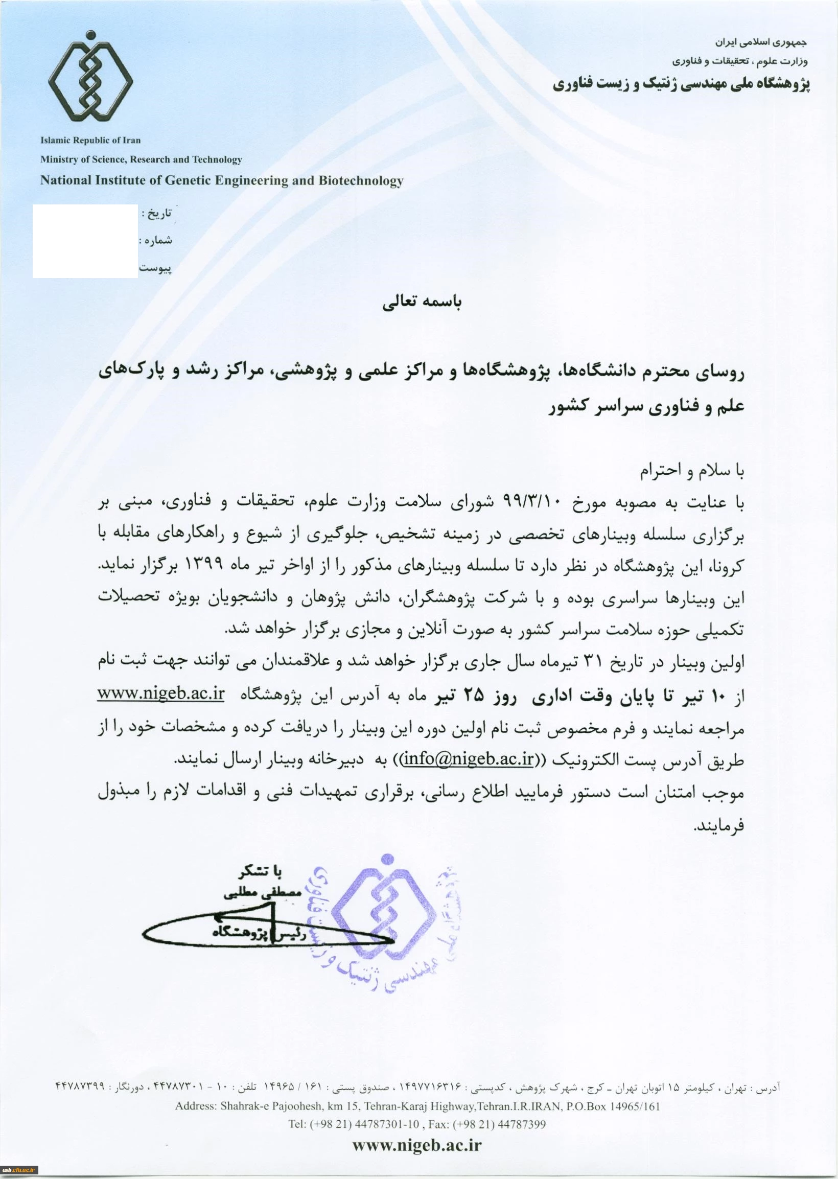 فراخوان برگزاری وبینارهای تخصصی در زمینه تشخیص، جلوگیری از شیوع و راهکارهای مقابله با ویروس کرونا 2