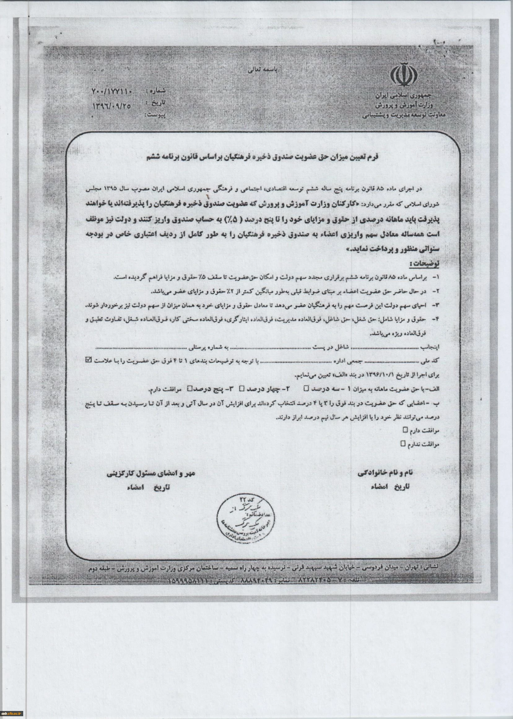 رونوشت نامه صندوق ذخیره فرهنگیان 5