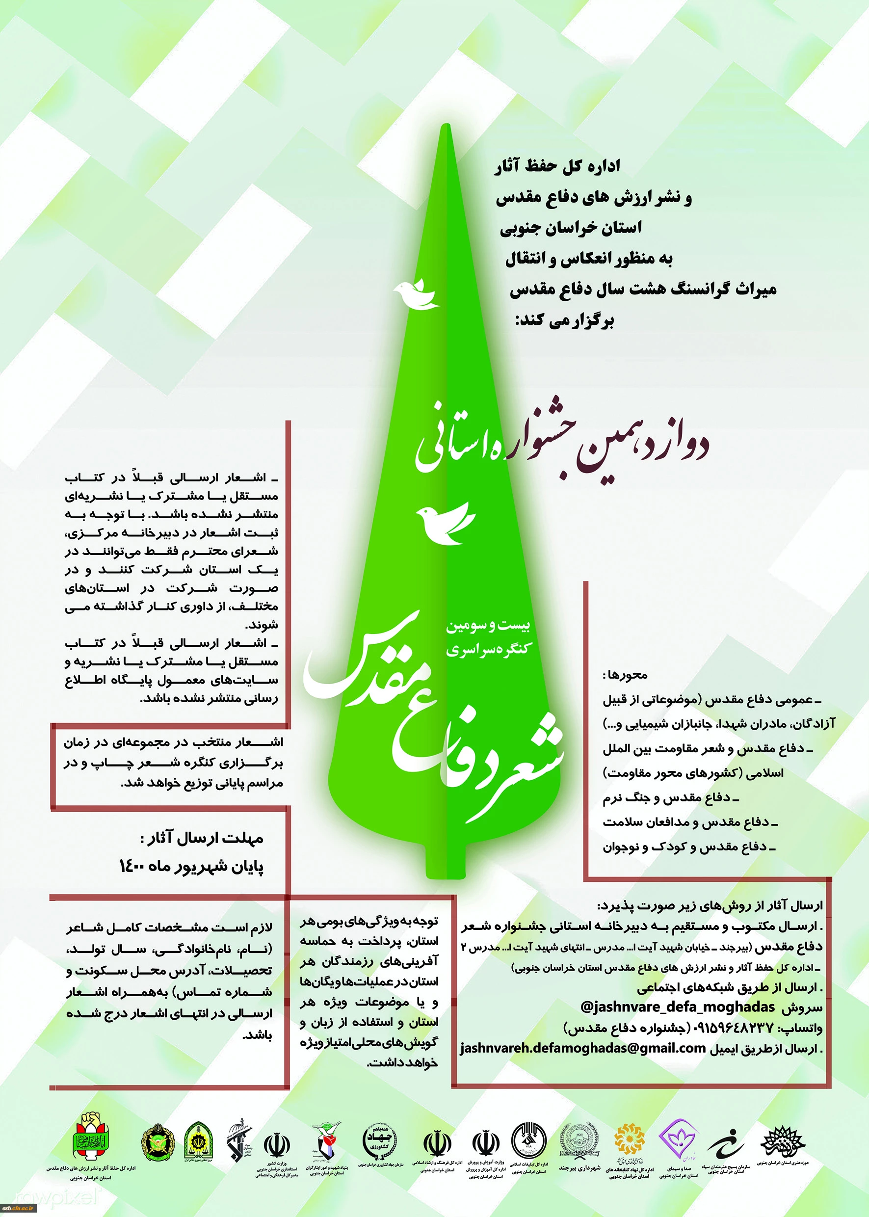 امتیاز دهید : دوازدهمین جشنواره استانی شعر دفاع مقدس و دهمین دوره جایزه ادبی یوسف 2 شنبه 9 مرداد 1400 ساعت 8:36