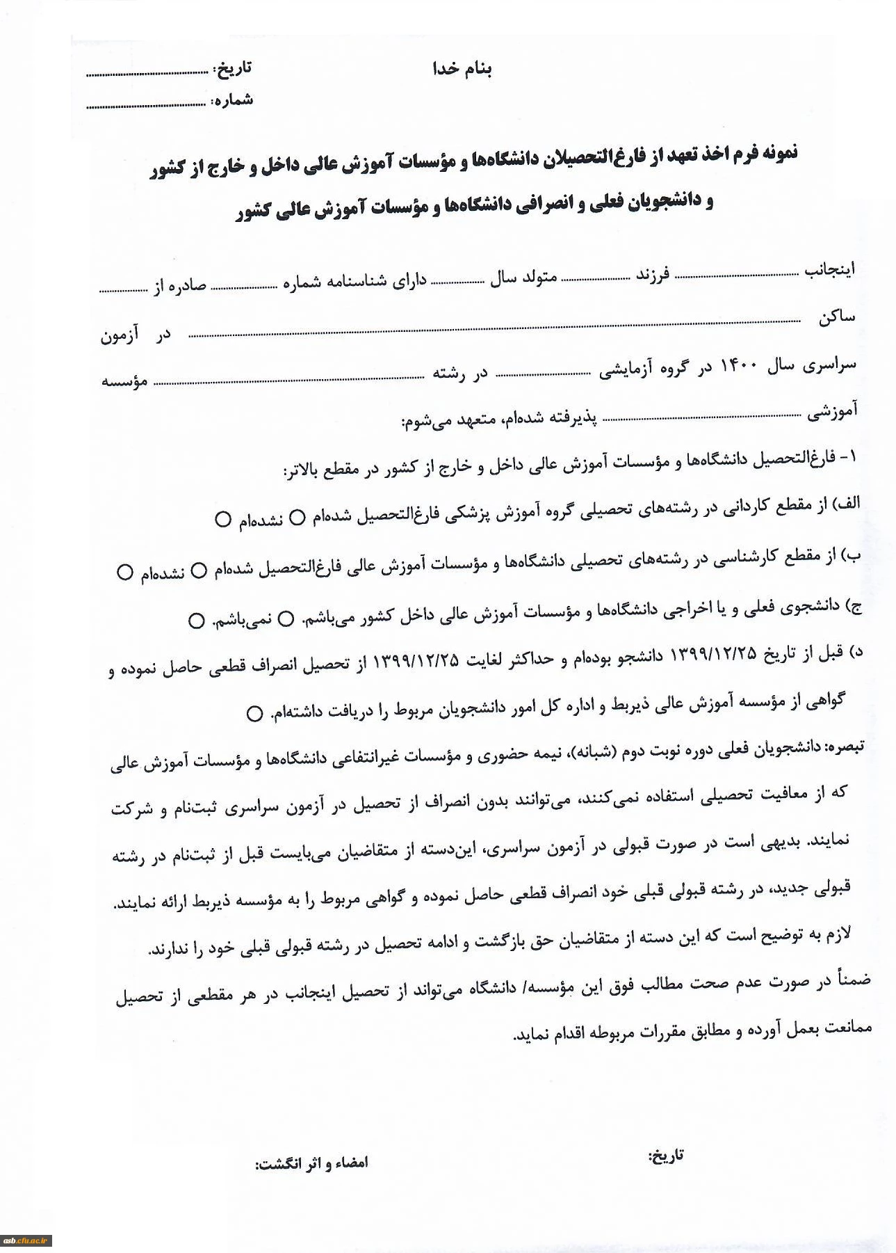 فرم شماره 2( پذیرفته شدگان کنکور 1400)