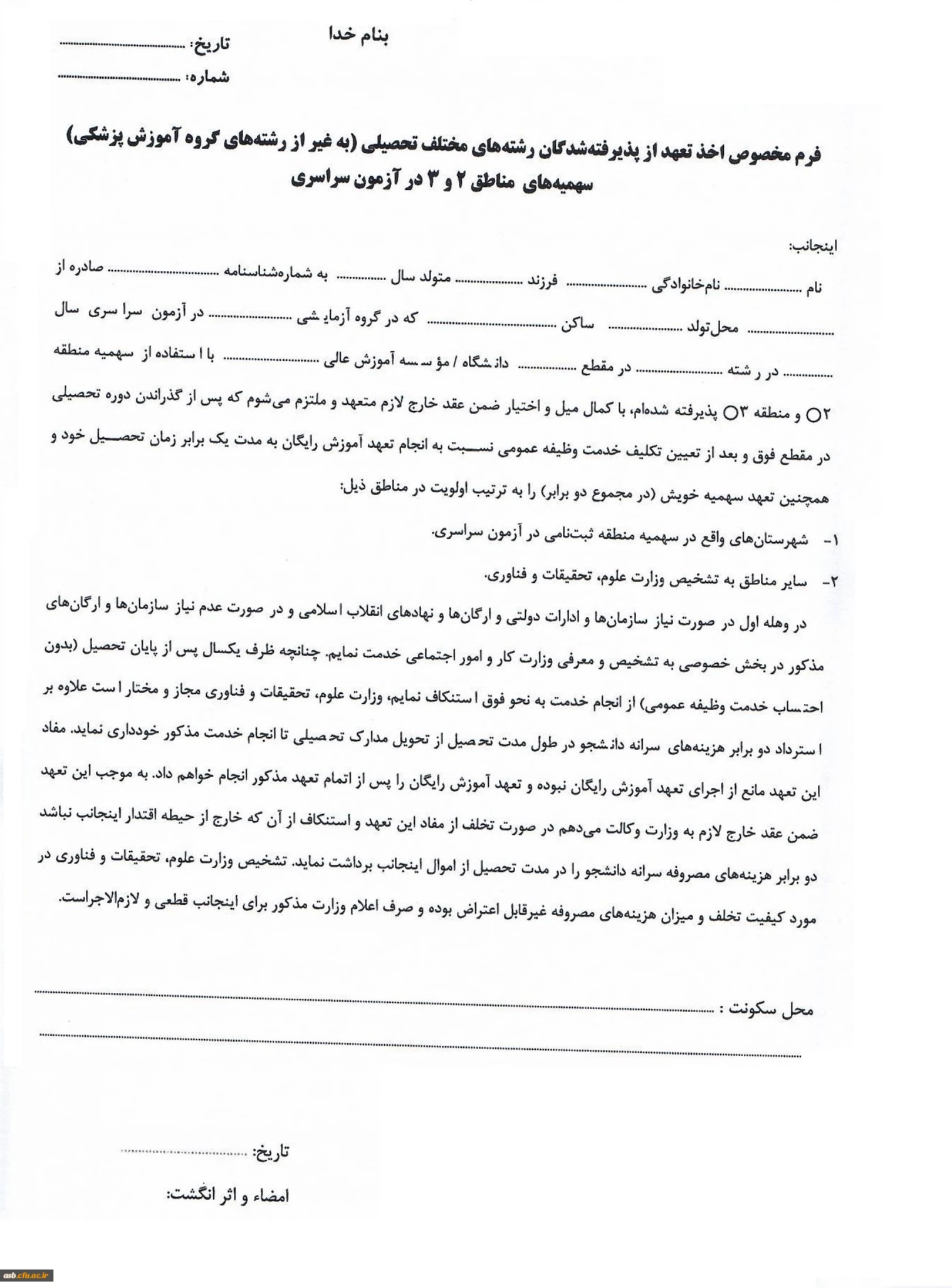 فرم شماره 5( پذیرفته شدگان کنکور 1400)