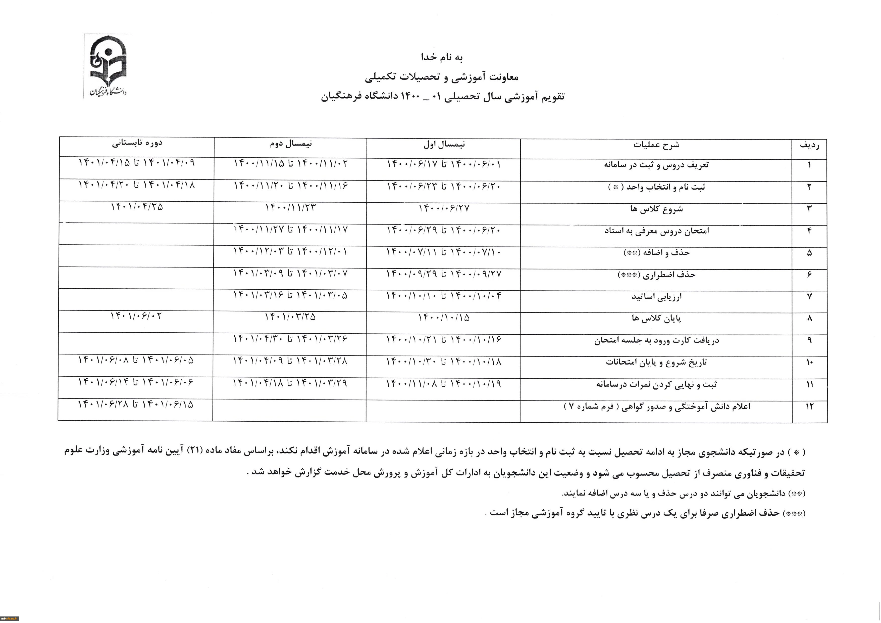 تقویم آموزشی سال تحصیلی 1401-1400 2