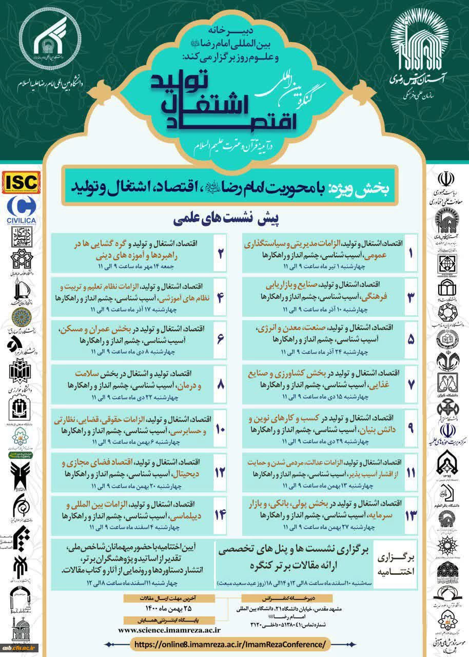 فراخوان "زمینه های تعاملات علمی و فرهنگی با دبیرخانه بین المللی امام رضا علیه السلام و علوم روز" 2