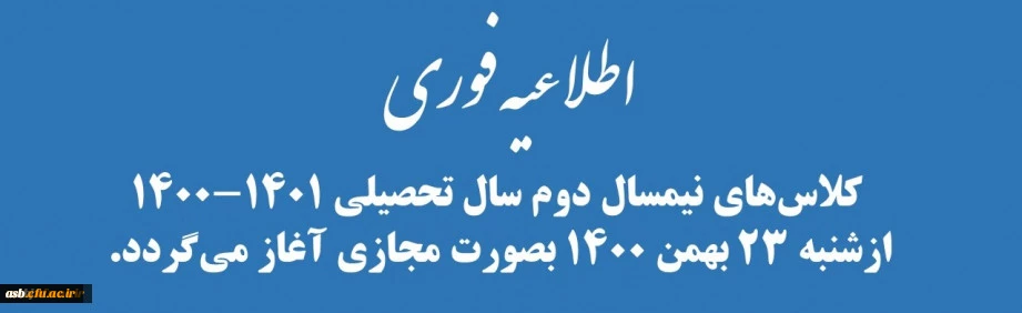 کلاس های نیمسال دوم سال تحصیلی 1401-1400 از شنبه 23 بهمن 1400 بصورت مجازی آغاز می گردد. 2