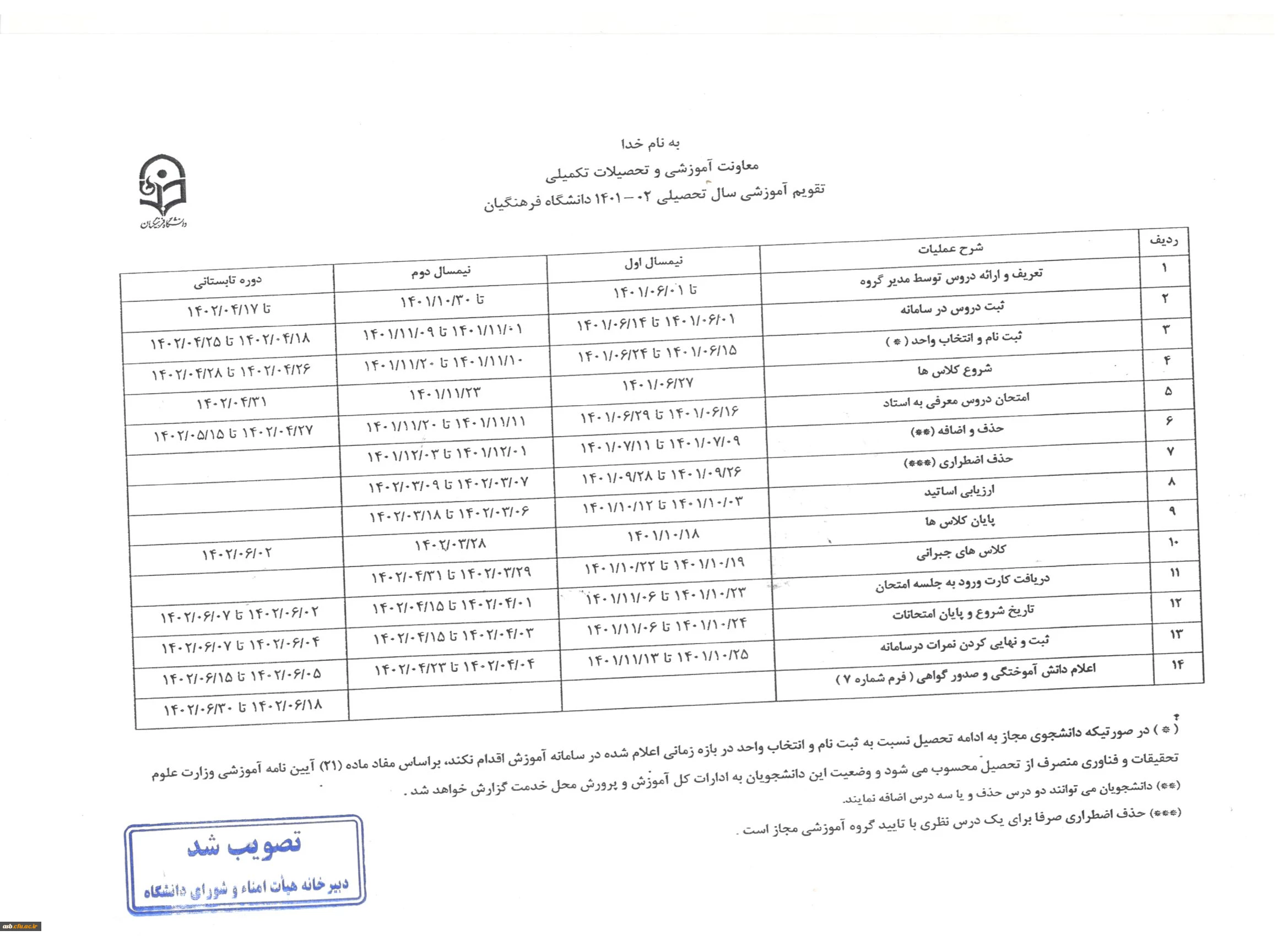 تقویم آموزشی سال تحصیلی 1402-1401 2