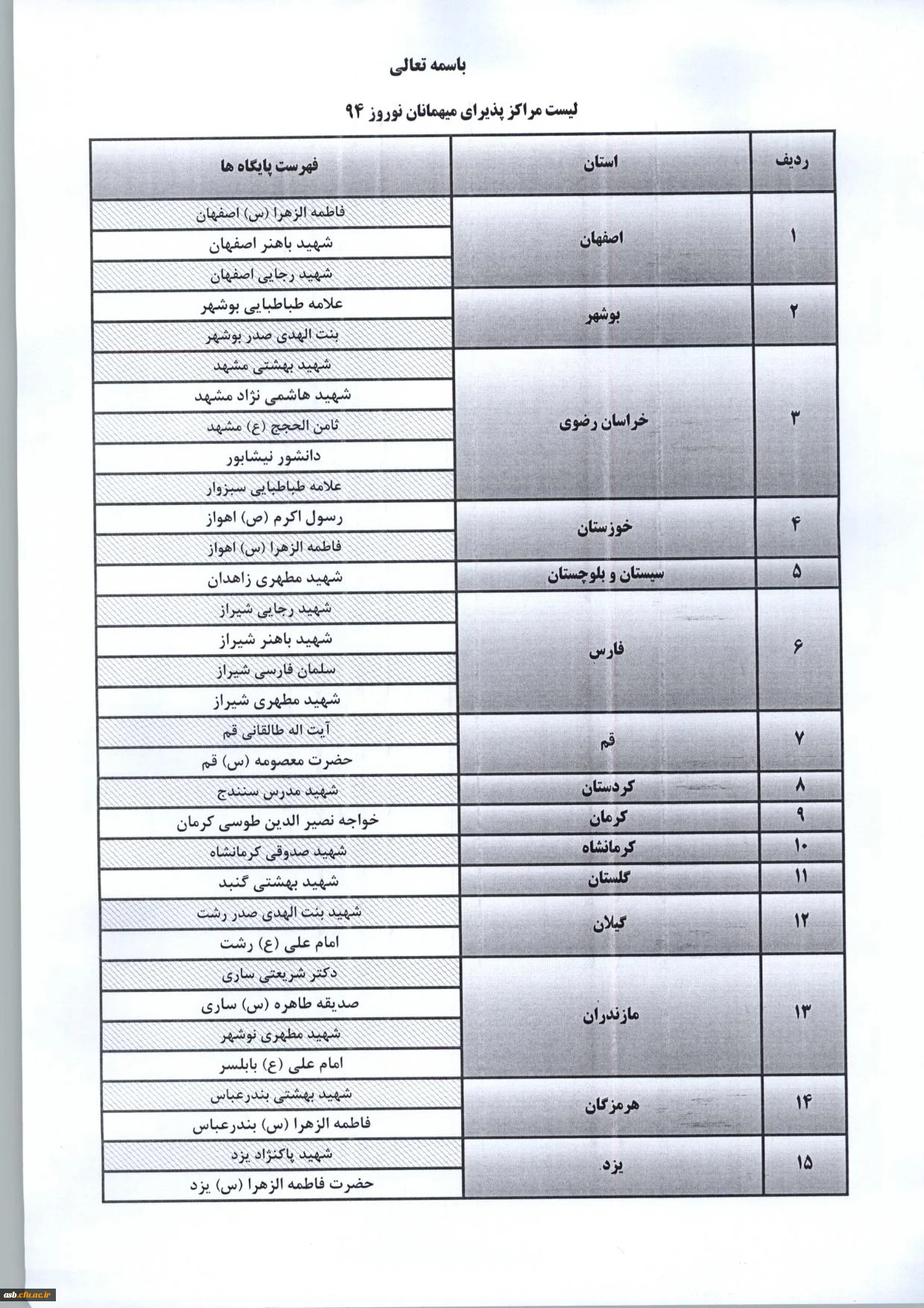 لیست مراکز پذیرای میهمانان نوروزی 94