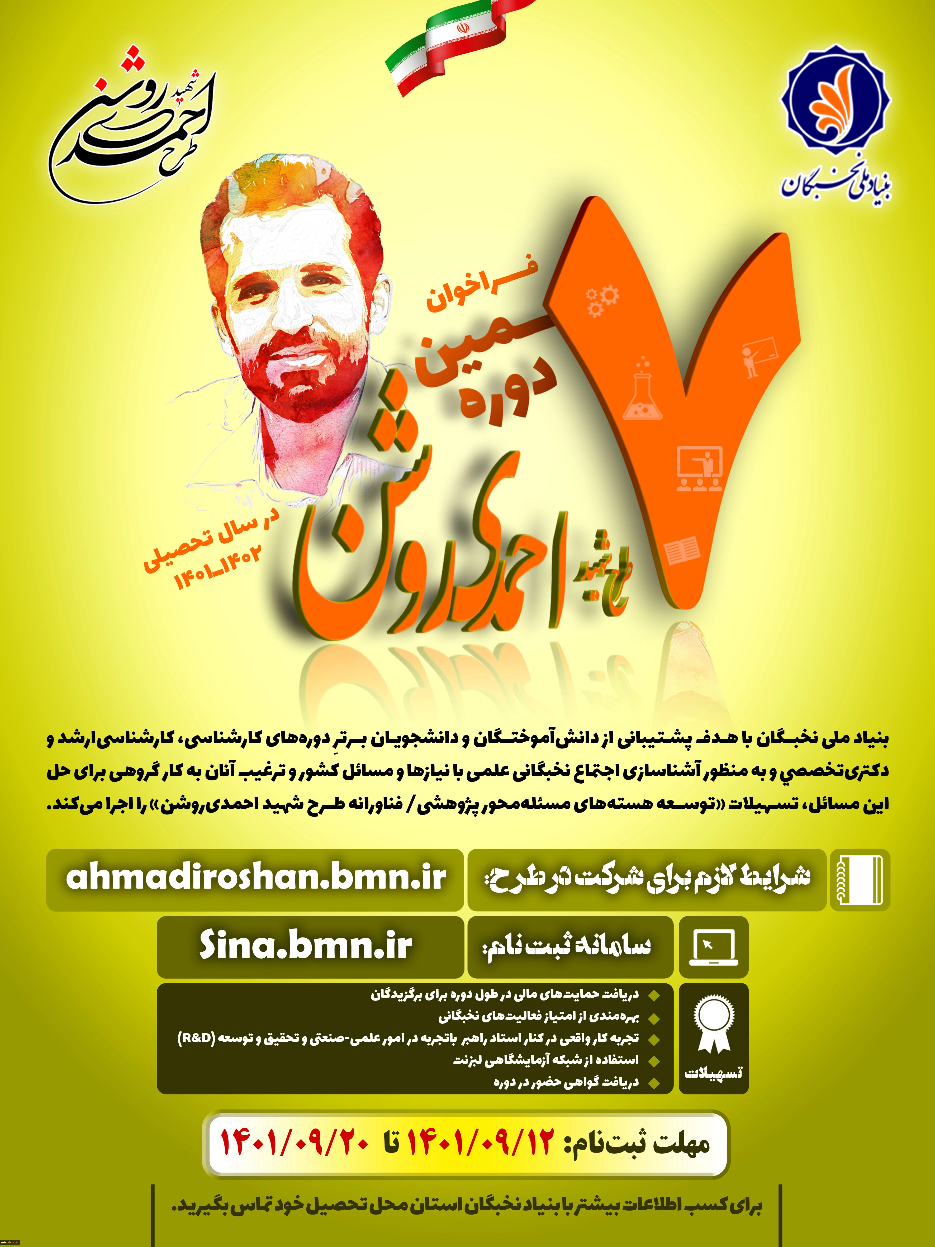 امتیاز دهید : فراخوان هفتمین دوره طرح شهید احمدی روشن در سال تحصیلی 1402ـ1401 2 سهشنبه 15 آذر 1401 ساعت 12:59