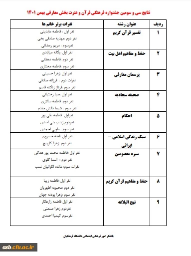 امتیاز دهید : نتایج مرحله استانی سی و سومین جشنواره فرهنگی قرآن و عترت 2 یکشنبه 7 اسفند 1401 ساعت 10:18