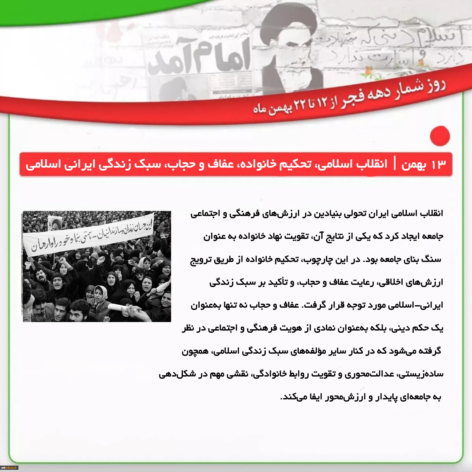 روزشمار انقلاب اسلامی ایران: 13 بهمن؛ انقلاب اسلامی، تحکیم خانواده، عفاف و حجاب، سبک زندگی ایرانی اسلامی 2