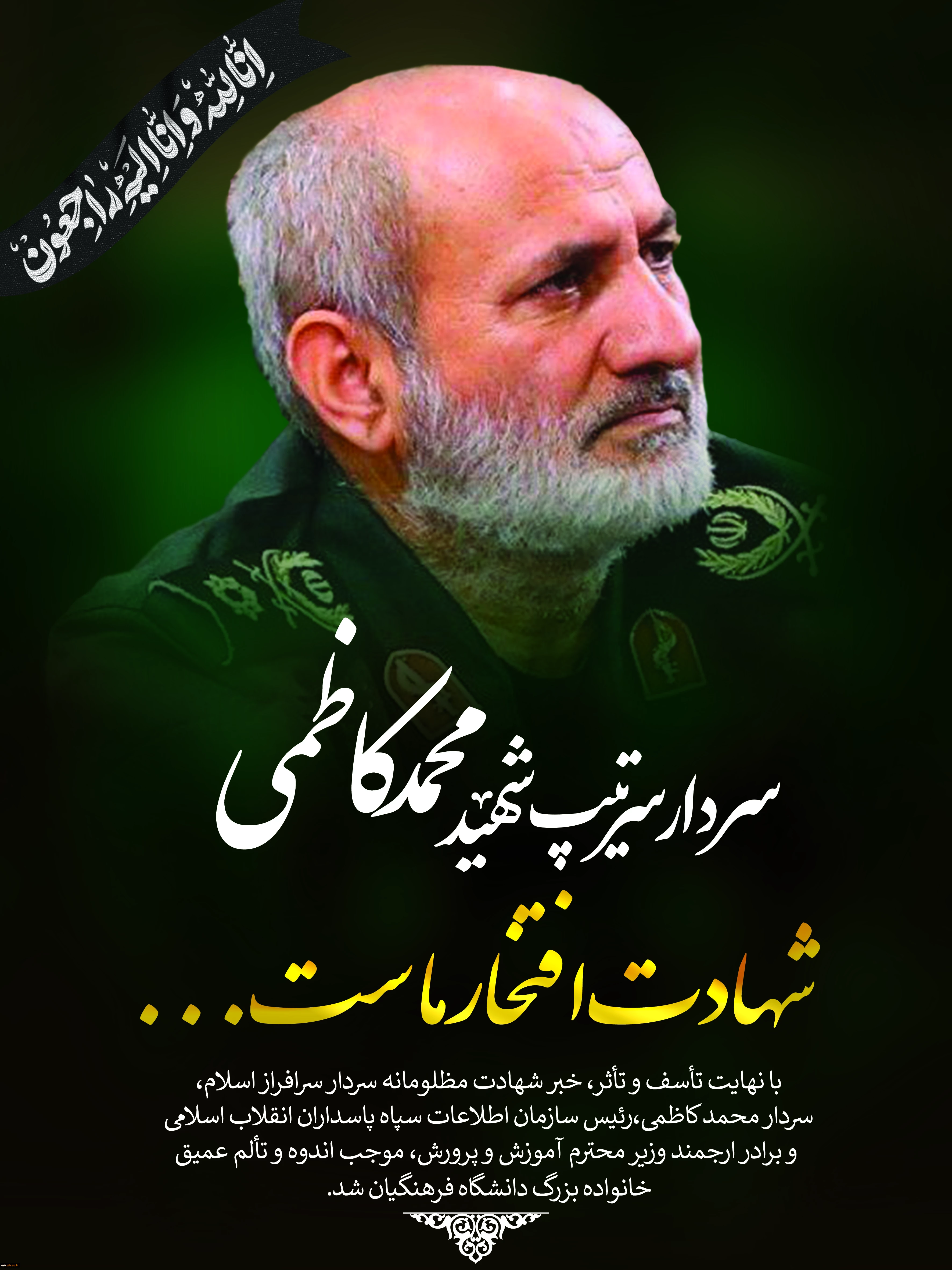 امتیاز دهید : پیامِ خانواده بزرگ دانشگاه فرهنگیان در پی شهادت سردار بزرگ اسلام شهید کاظمی 2 دوشنبه 26 خرداد 1404 ساعت 11:52
