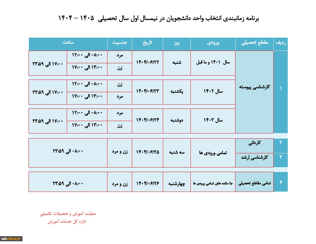 امتیاز دهید : زمانبندی انتخاب واحد دانشجویان در نیم سال اول 1404-1405 2 یکشنبه 16 شهریور 1404 ساعت 7:18
