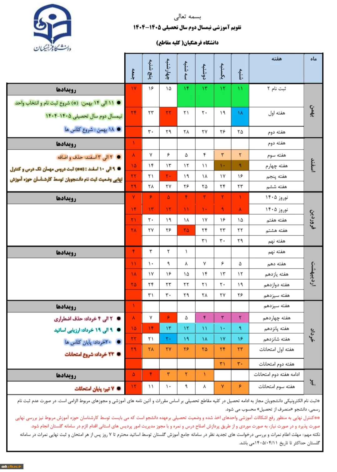 اطلاعیه تقویم آموزشی سال تحصیلی ۱۴۰۴-۱۴۰۵ 5
